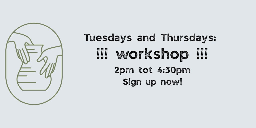 When? Every Tuesday and Thursday afternoon from 2pm to 4.30pm. Sign up through the contact form. On request and if possible, deviation from the standard workshop days is possible.